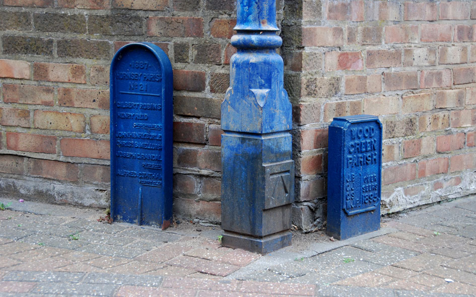 HGY025: Arnold Bennett Way [civil parish boundary markers either side]; N8;