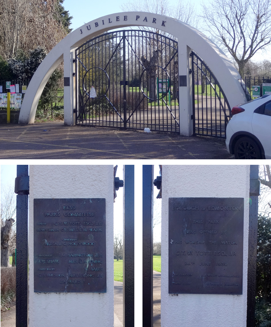 ENF129: Galliard Road, Jubilee Park gates; N9;