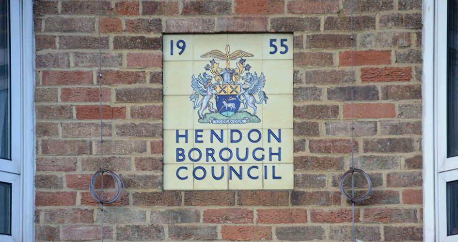 BAR146: Hartley Avenue, on wall of public library; NW7;
