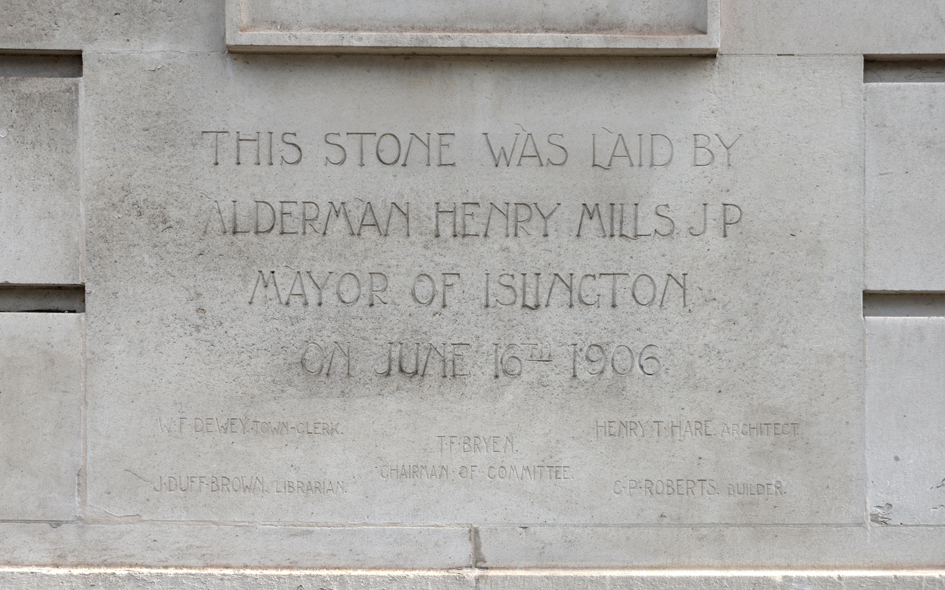 ISL047: 66 Holloway Road, on wall of Islington Central Library; N7;