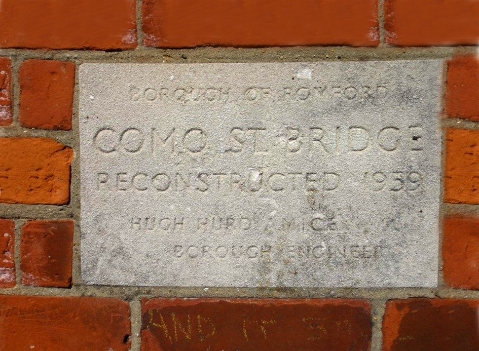 HAV023: Como Street, north side, east brick pillar of bridge over River Rom; RM7; 29th April 2021 [courtesy of Steve Smith]