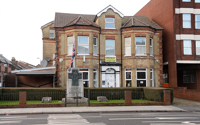 Finchley United Services Club on 28th January 2021. The Hendon garage memorial is to the left of large memorial and that from Finchley depot to the right. |