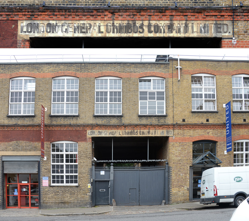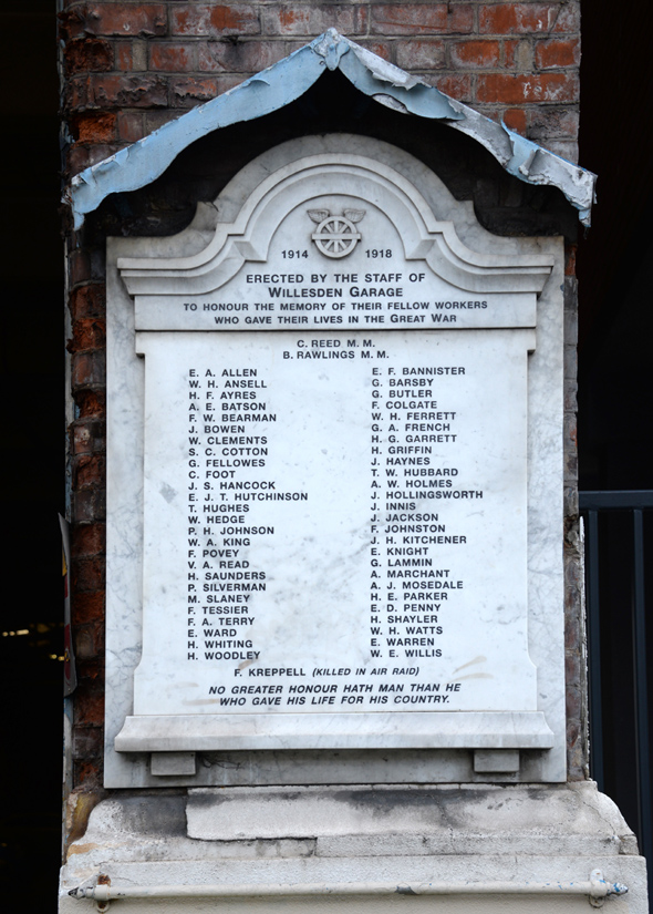 BRE011: High Road [Willesden], on right-hand pier entrance to Willesden bus garage; NW10;