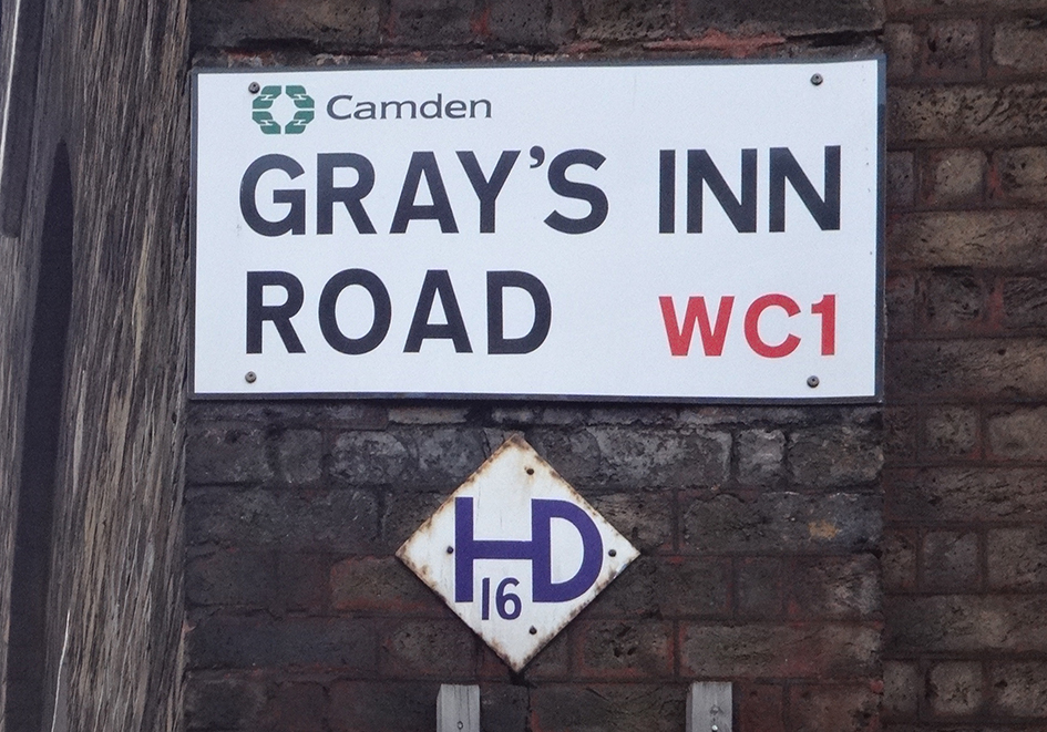 CAM050: Grays Inn Road, on wall of no.251, at junction with Argyle Street; WC1;