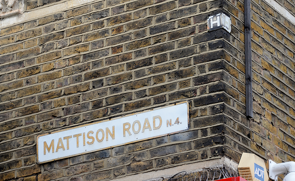 HGY107: Green Lanes, west side, on wall at junction with Mattison Road; N4;