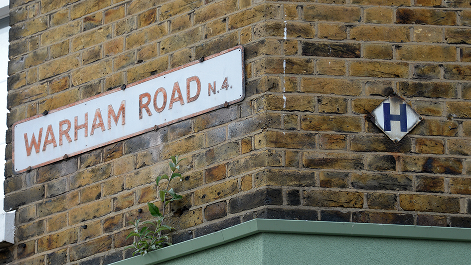 HGY109: Green Lanes, west side, on wall at junction with Warham Road; N4;
