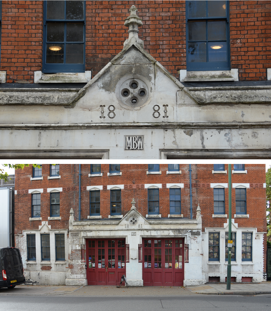 TWH030: Bessy Street, on building on corner of Roman Road; E2;