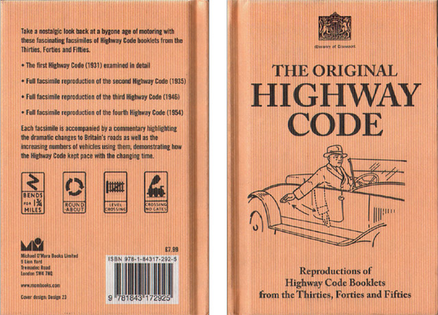 This hardback book was published by Michael O’Mara Books in 2008. It contains a background narrative on ‘The Birth of the Highway Code’, and complete facsimiles of editions from 1935, 1946 and 1954. [6⅝ x 4½ inches (170x114mm)] |
